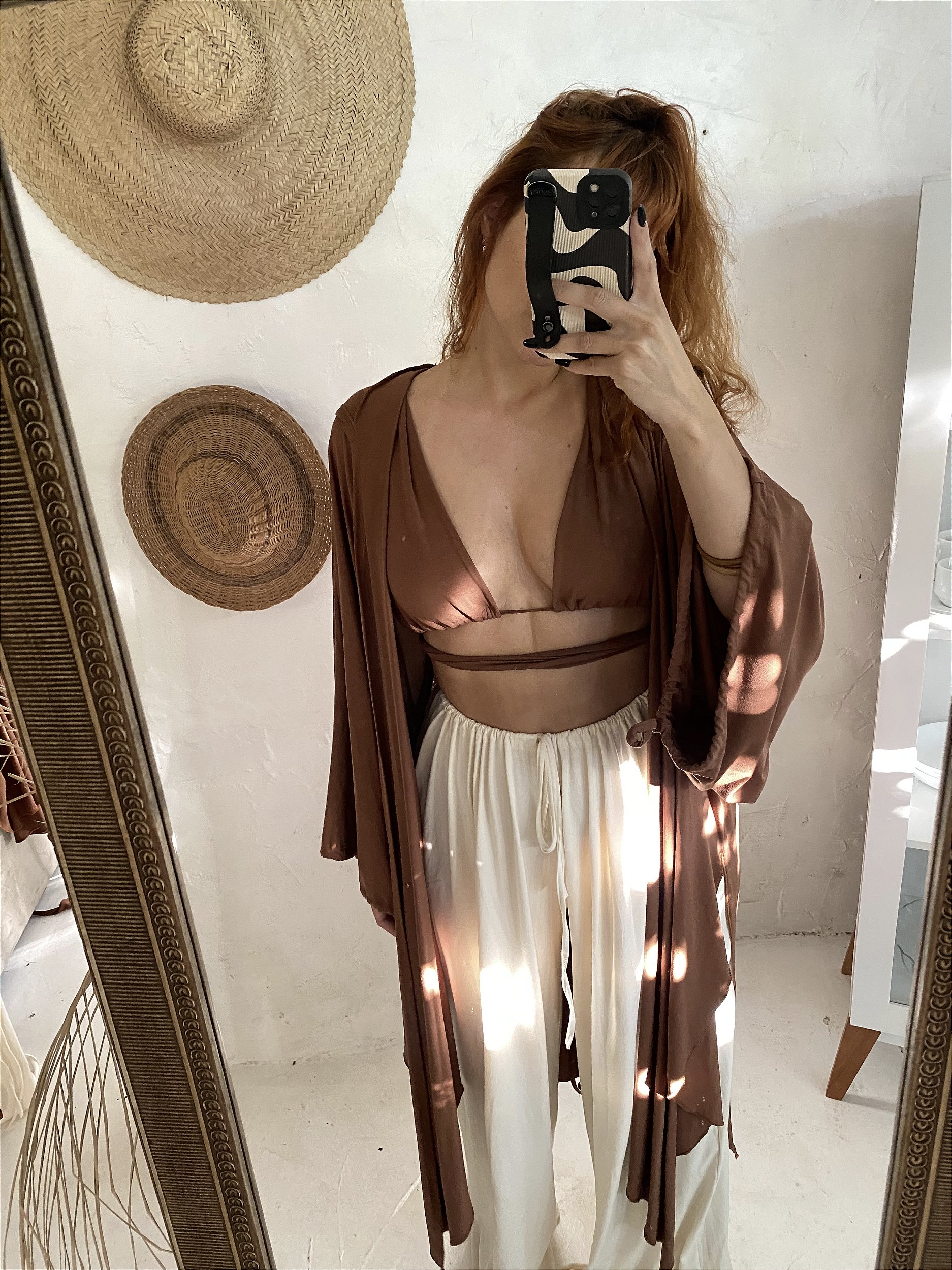 Kimono Medusa, com um detalhe especial e versátil nas mangas te dando a possibilidade de usar com as mangas amplas e soltas ou com elas amarradinhas e contidas, possui também um capuz pra te proteger do sereno...